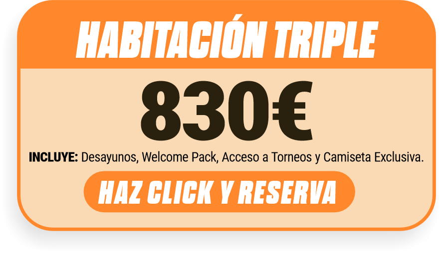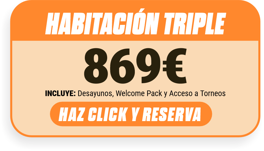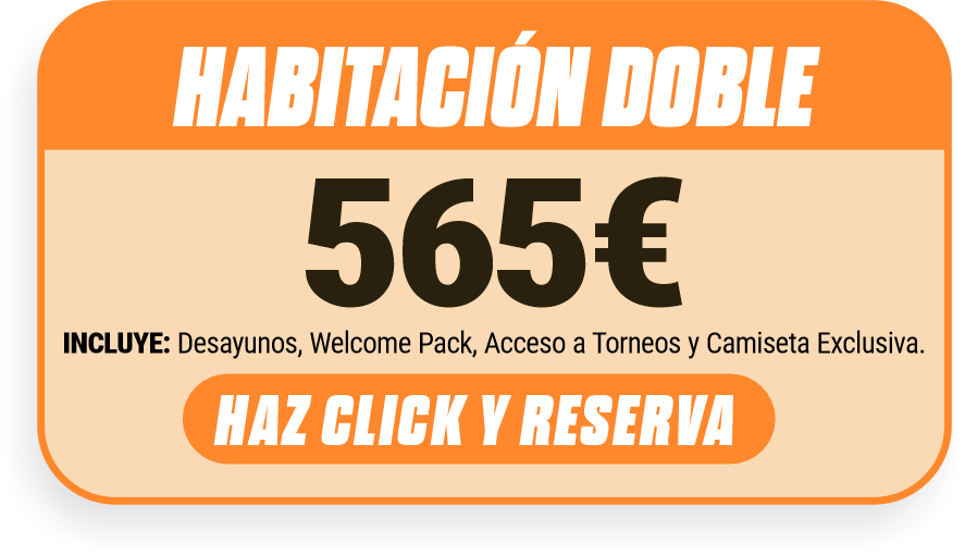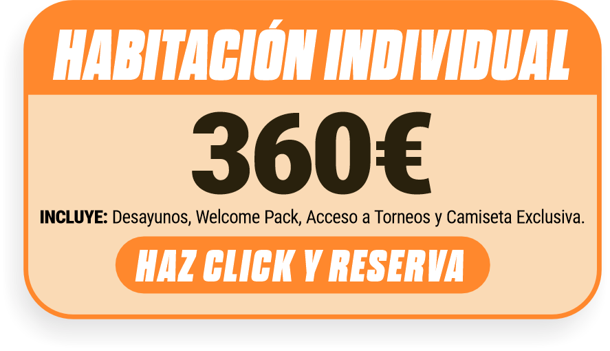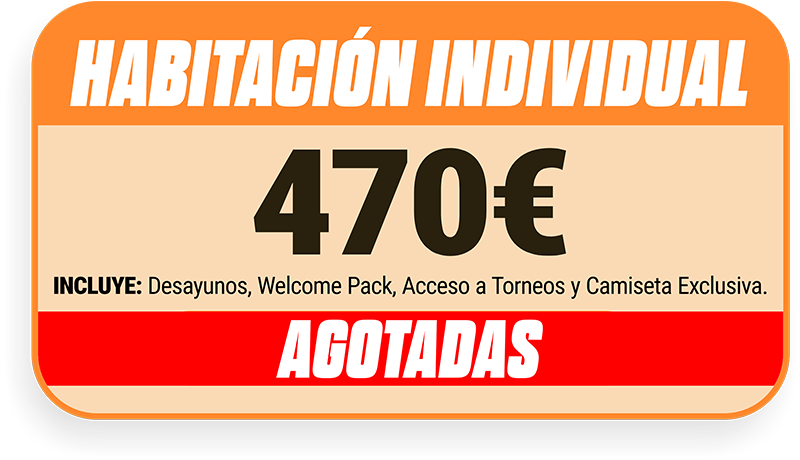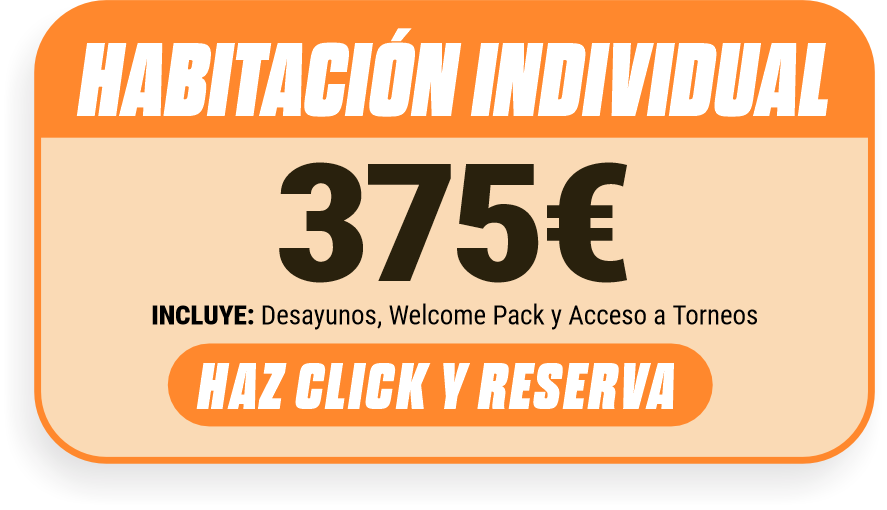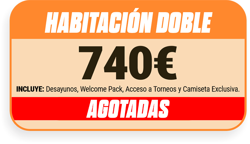 Las habitaciones para el evento son habitaciones dobles (dos personas) para las tres noches y tienen el desayuno incluido.